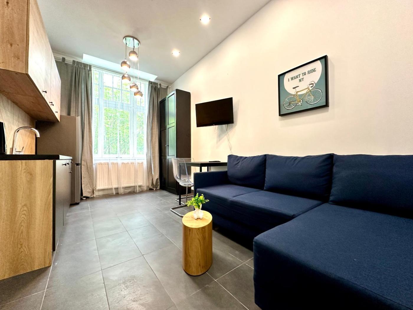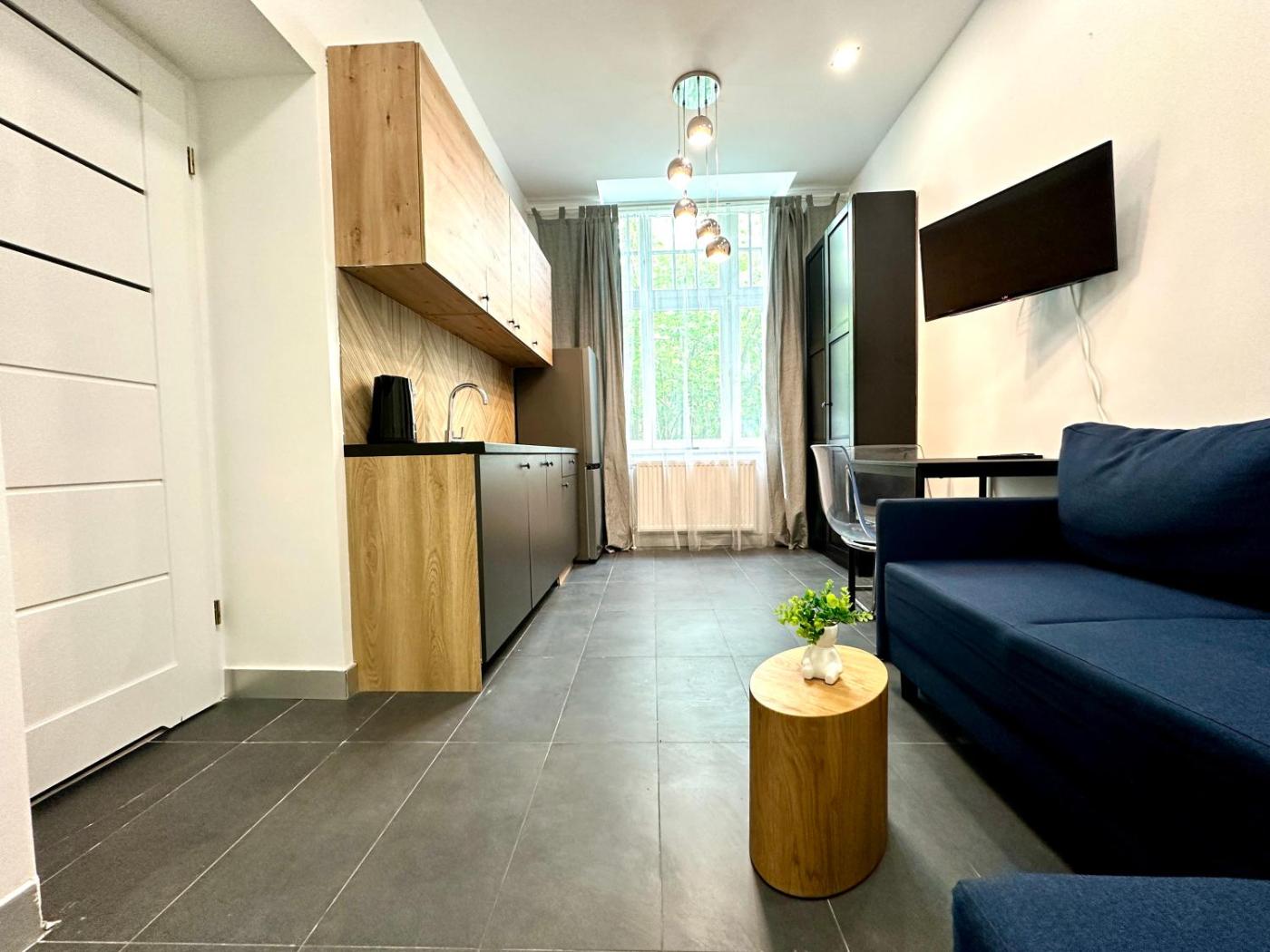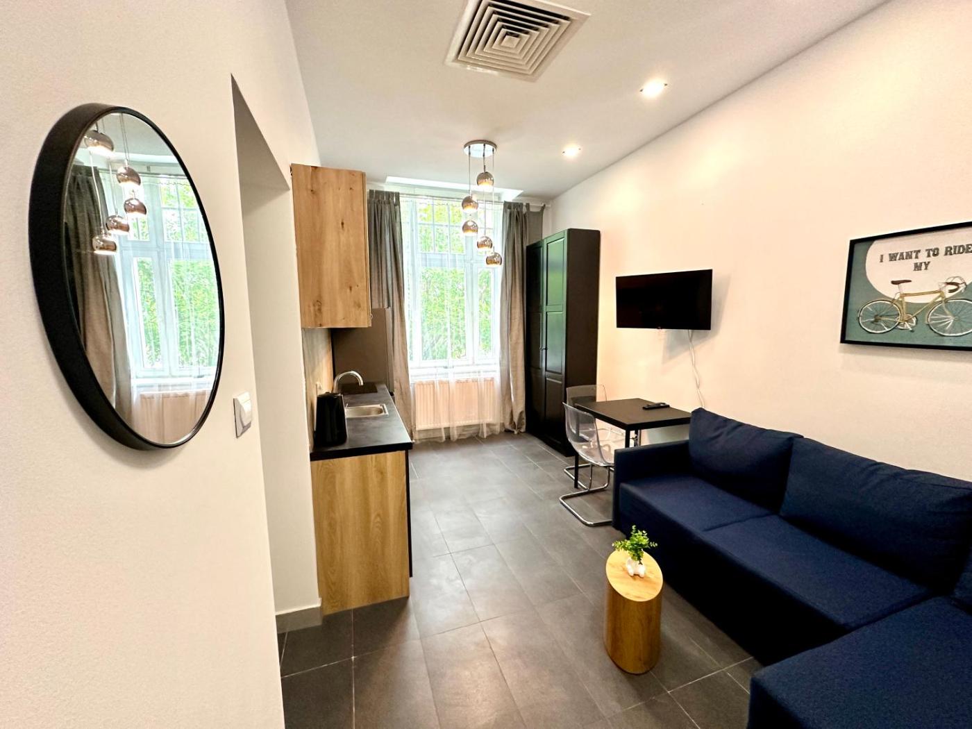 Studio. The studio provides a washing machine, a dining area, as well as a private bathroom featuring a shower. In the kitchenette, guests will find a stovetop, a refrigerator, kitchenware and an electric kettle. This studio features a wardrobe, heating and a flat-screen TV. The unit offers 1 bed. Apartament - 2 osobowy. Powierzchnia pokoju ok.: 18 mkw.